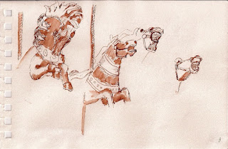 But I did follow the race for a short distance, where they stopped for a gigantic dance party outside of an Irish Pub. So, even though these sketches are pretty runny with drizzle and can't catch the full degree of chaos and magic of the event, it's a tiny glimpse of some of the costumed creativity.